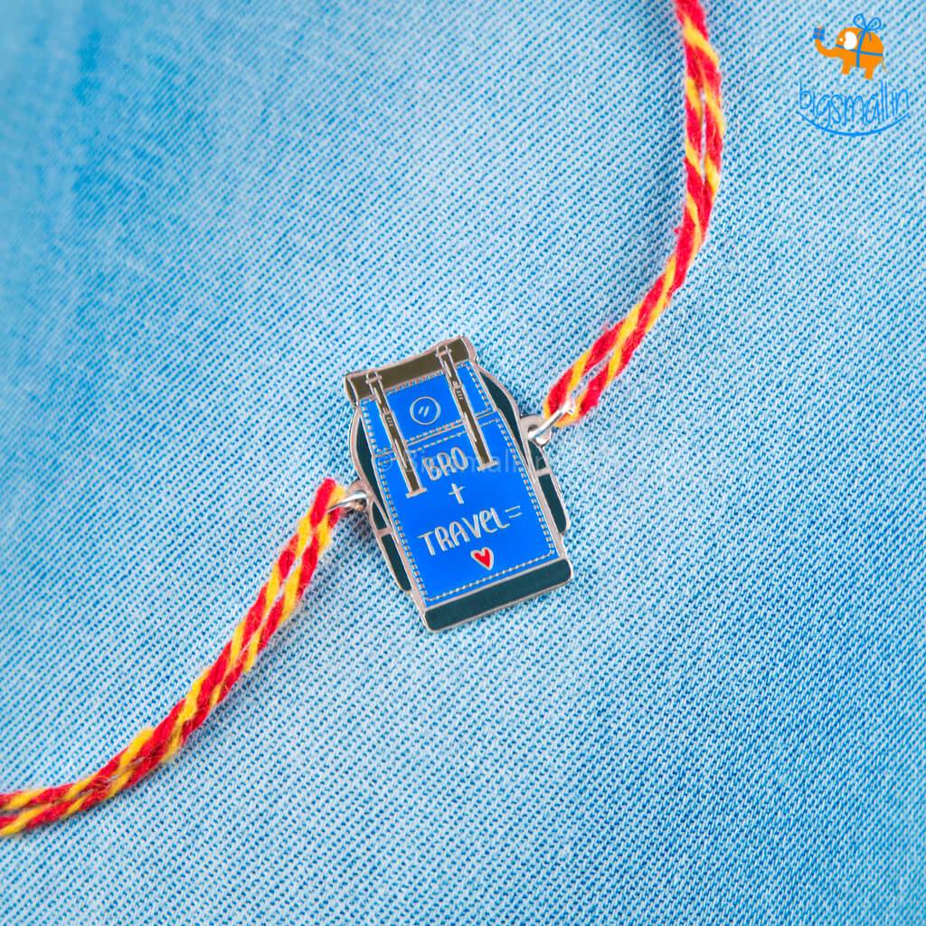 For the bro who lives, eats & breathes travel, we got you the perfect personality specific Traveler Bro Rakhi. Treat your brother to something he will cherish long after the rakhi season is over with this quirky rakhi cum bracelet. With a brass sheet embellishment that depicts a backpack with the words, "Bro+Travel", this is one fun rakhi for your wanderlust bitten bro.