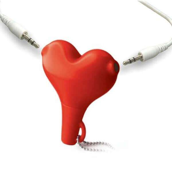 1 x Neon heart sign, 1 x Huge heart mug, 1 x Heart audio splitter