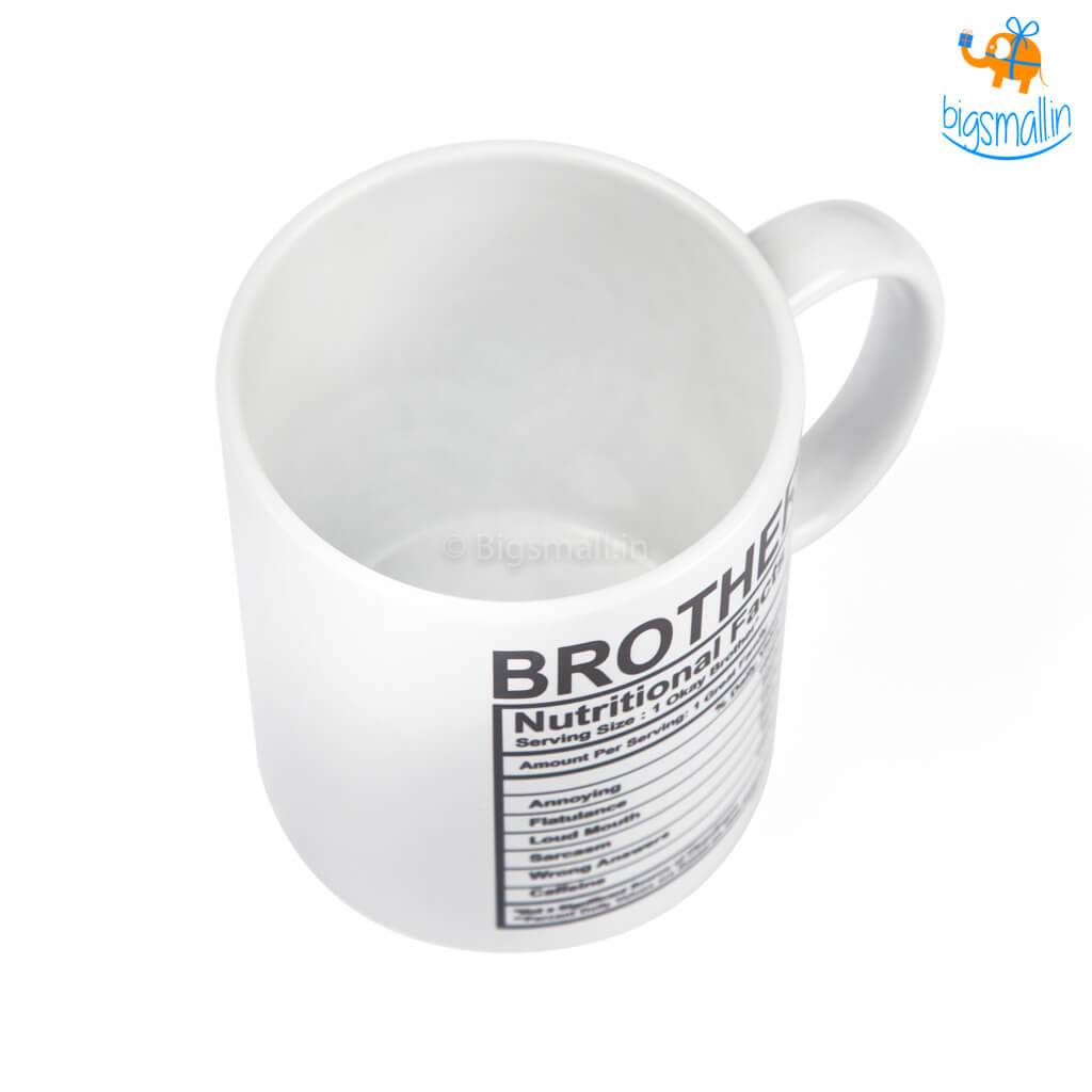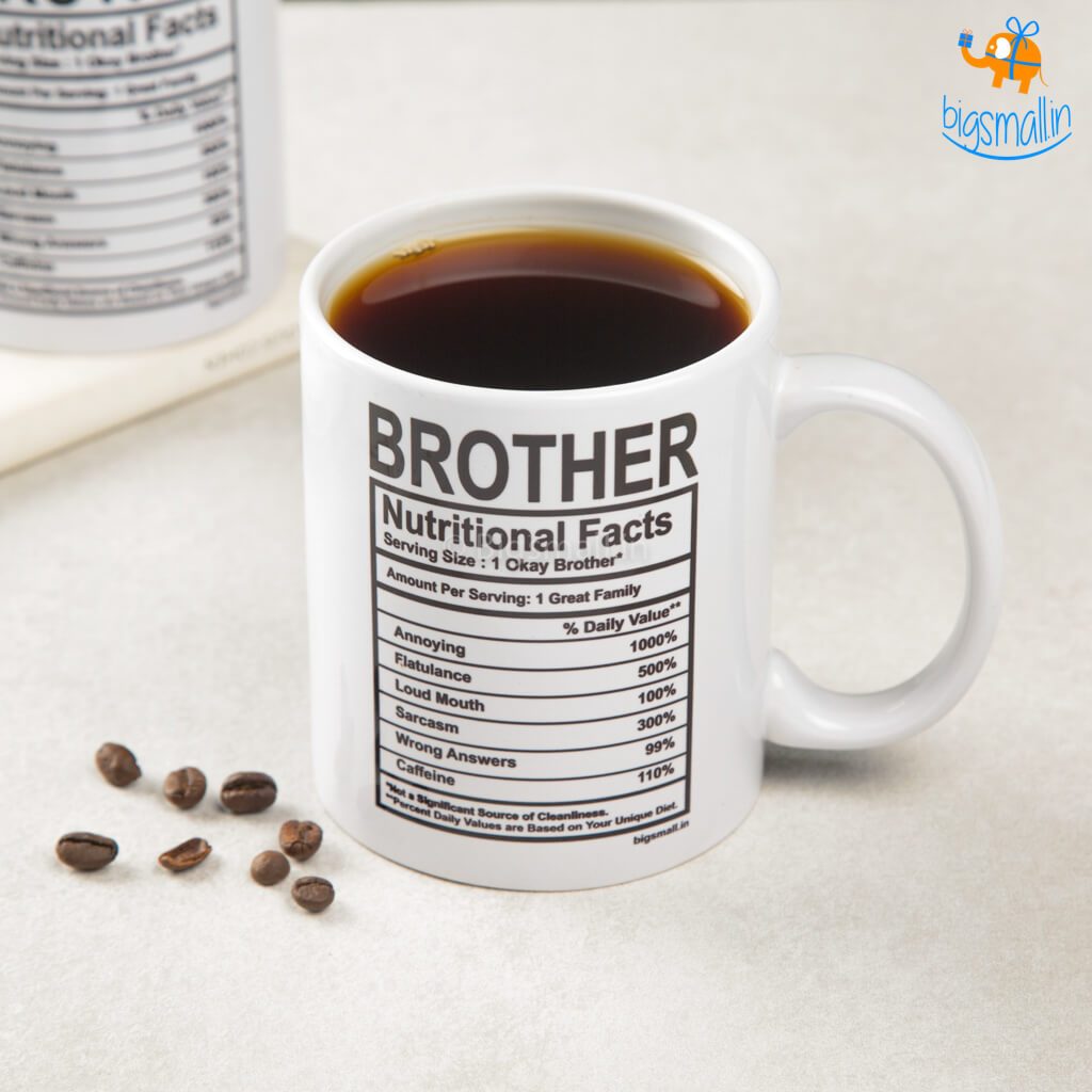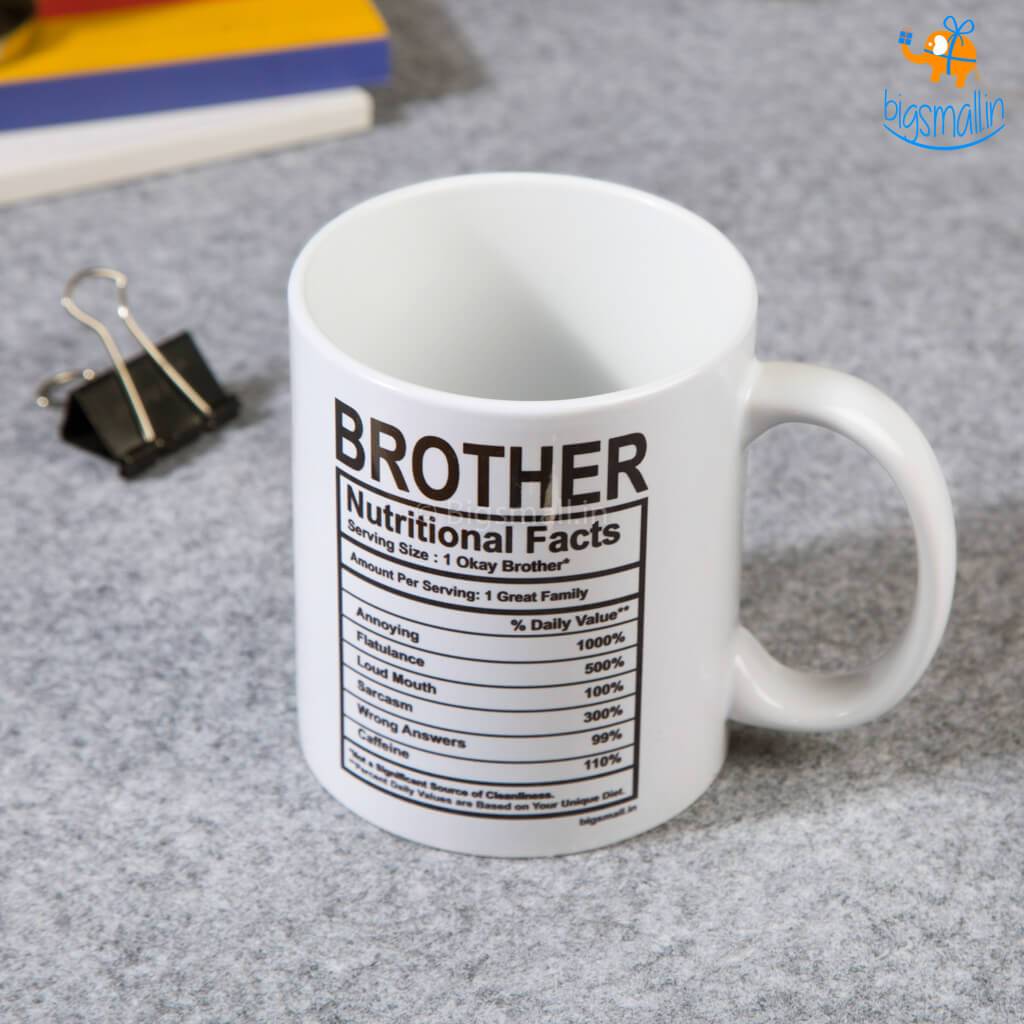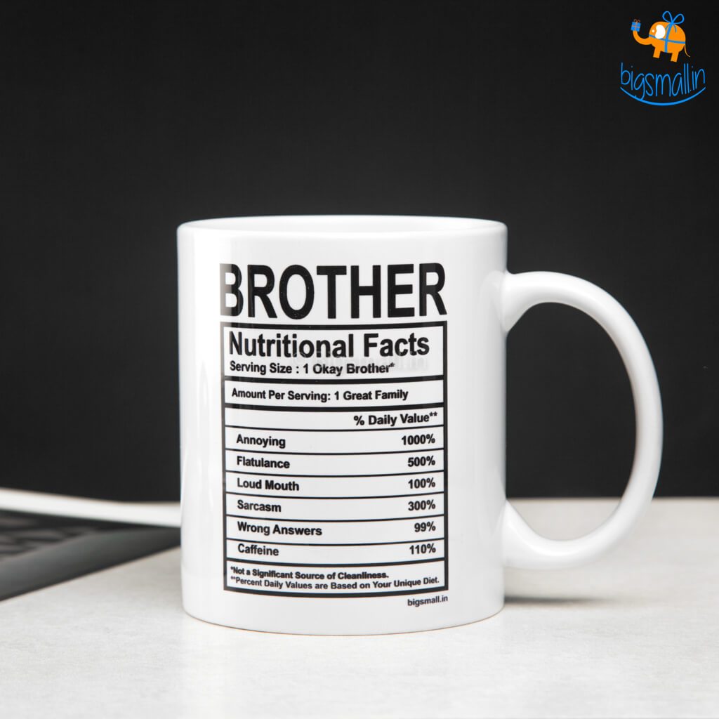 A brother is a piece of work - he's crafted with God's most sinister ingredients. He may be an annoying brother, but after all, he's your annoying brother. This Raksha Bandhan, cherish your brother's quirkiness with the Brother Nutritional Facts Mug - with a set of hilariously relatable nutritional facts of every brother listed. A wonderful Rakhi gift for brother, this mug will him grinning every time he looks at it Made of ceramic, this mug will last for Raksha Bandhans to come.
