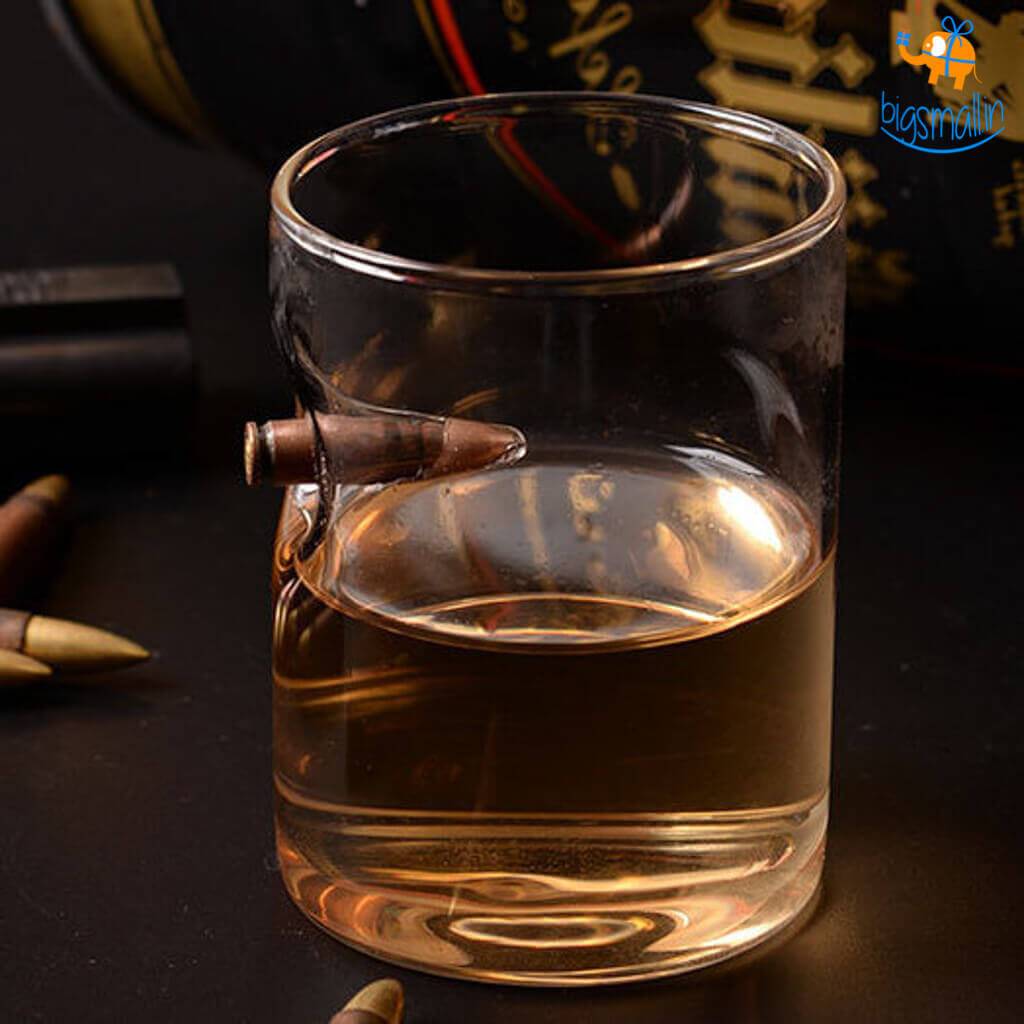 - Whiskey Glass embedded with a real.308 bullet