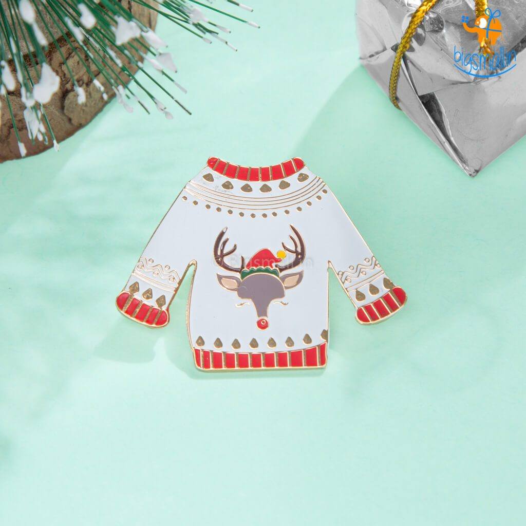 Spread the cheer this Holiday season with the super adorable Christmas Sweater Lapel Pin. Reminiscent of the warmth inherent in each and every Christmas present from our loved ones, this classic red and white sweater with a reindeer built right into it, is the stuff Christmas fables are made of. Make a gift of warmth and joy to loved ones with this cute lapel pin.