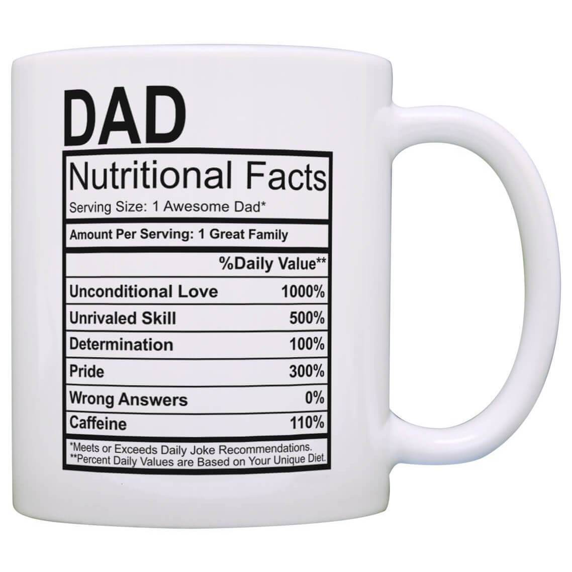 - Imprinted list of nutritional facts of what constitutes a dad - befitting any dad