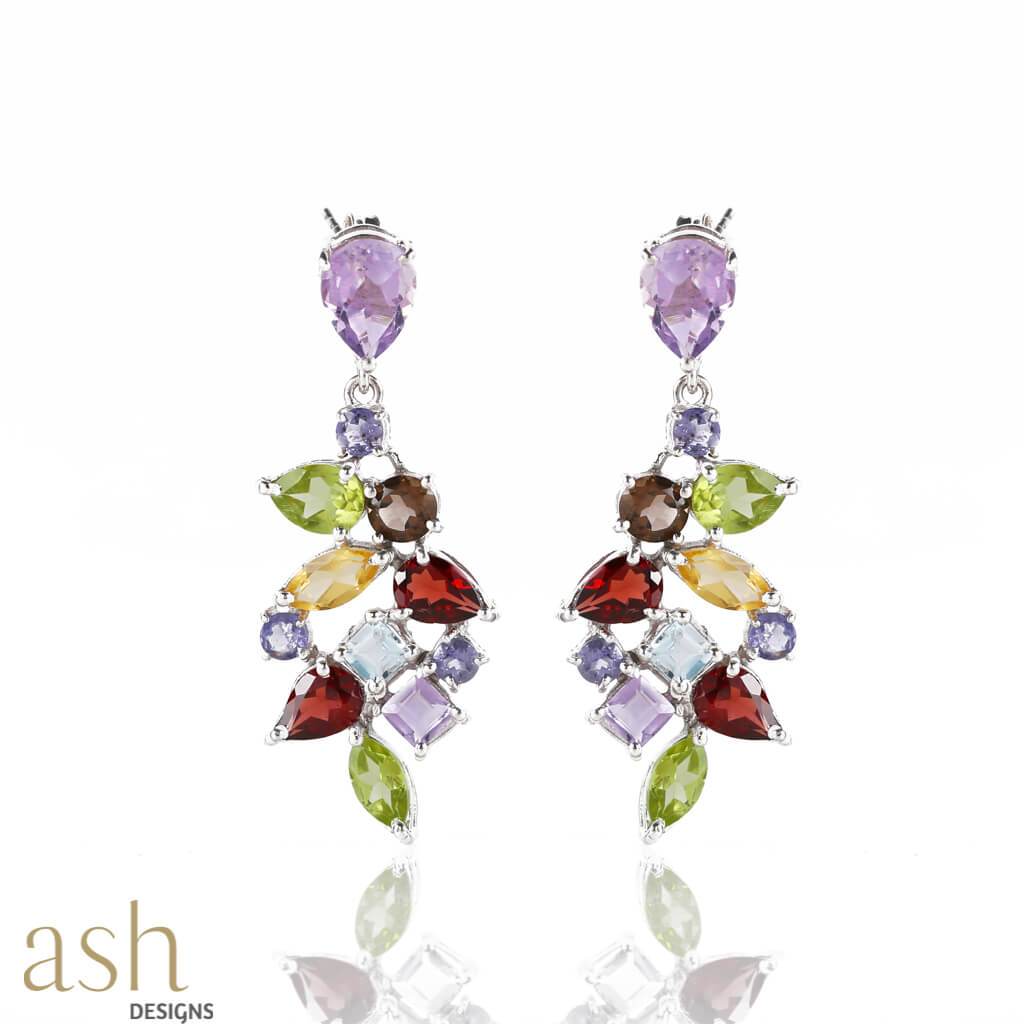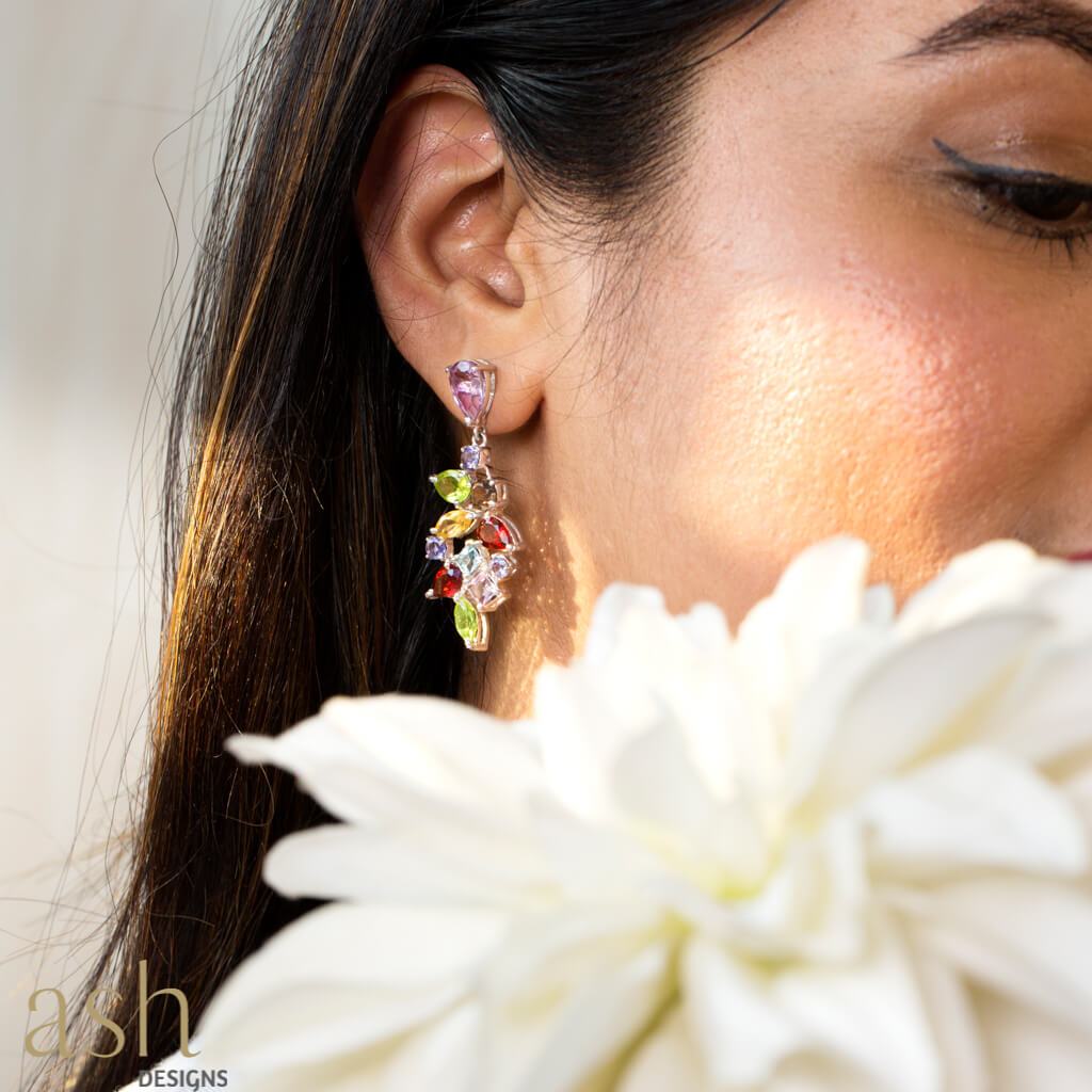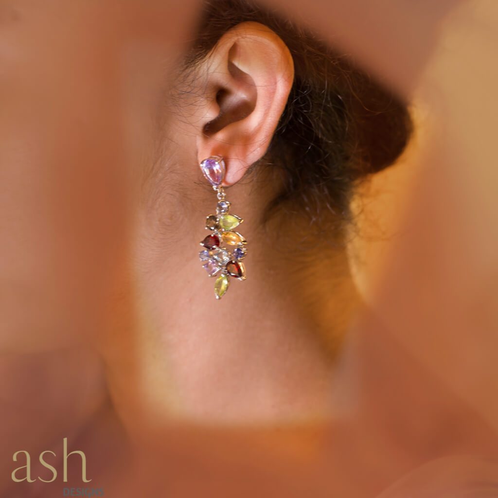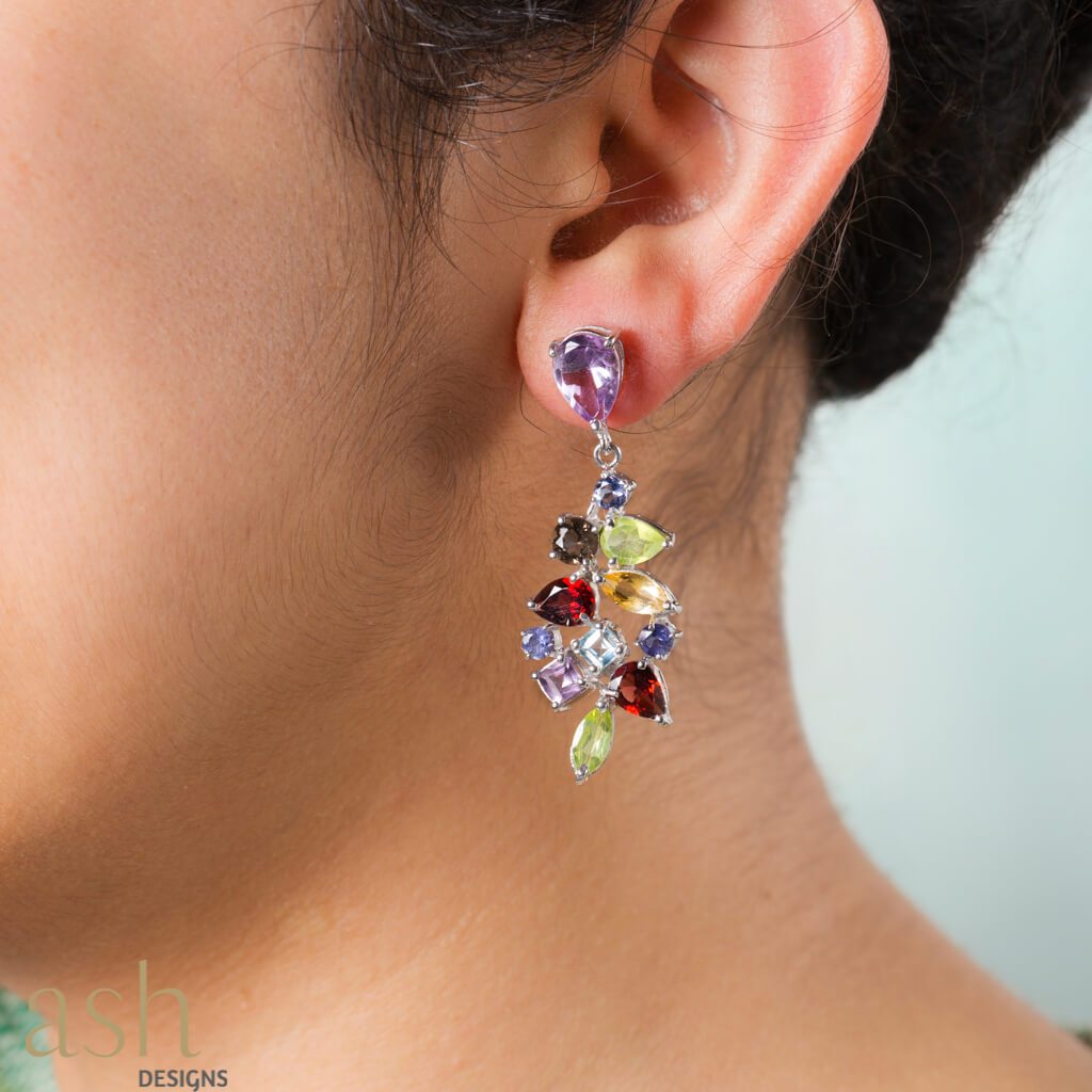Inspired by the phenomenal coming of spring and the full bloom of our favourite flowers. Multi-gemstones peridot, pink amethyst, garnet, citrine, smokey quartz, and tanzanite have been carefully set in 925 silver to intrinsically capture the gemstone’s hues. The earrings can be worn for a formal event or a brunch out with friends. Surprise your wife or girlfriend on her birthday with this beautiful gift.