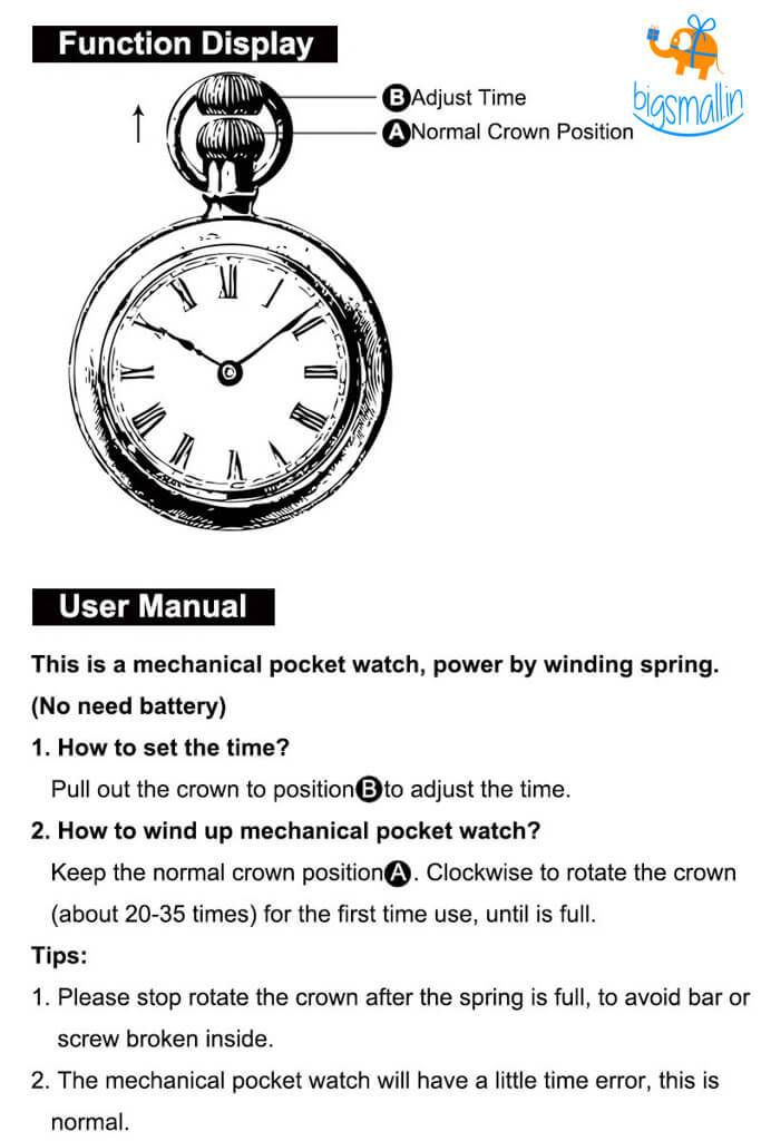 • Dimensions: 40 cm (chain), 4.5 cm diameter (pocket watch)