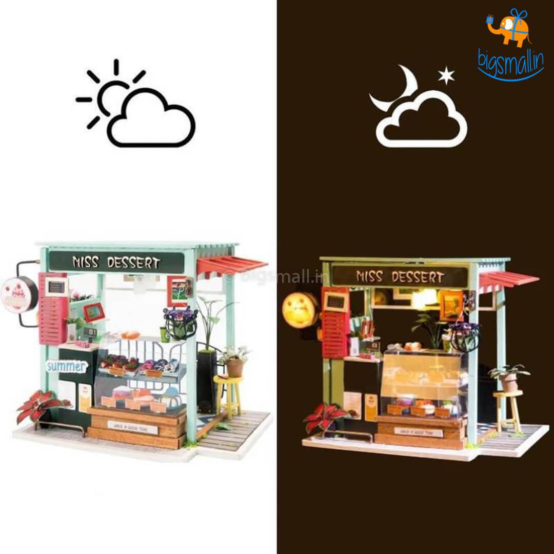 Satisfy your sweet tooth with your own miniature dollhouse dessert parlour. Your mouth will water as you build this trendy shop filled with colourful desserts. Spend your Sunday building the house up or enjoy time with your little one as you both bond over this project. A great gift for a friend who loves miniature stuff or for a kid in your life who likes to take up challenging projects. A cute collectable, it looks wonderful when the light is turned on. All the material is provided in the box, all you have to do is follow the instructions step by step and let all the creative juices flow.