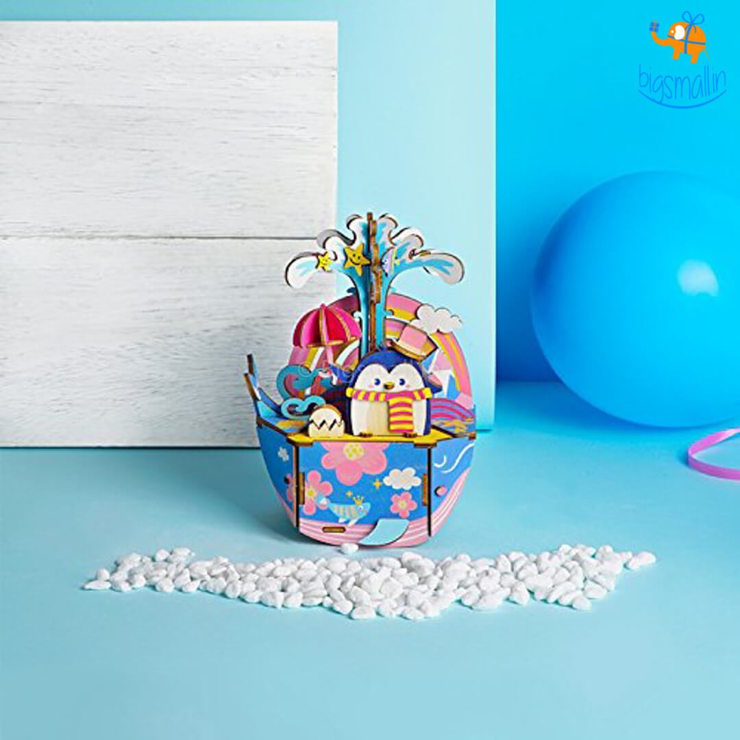 Relive all the happy memories of the time you spent in the aquarium every time you play the music box. The music box is mechanical so certain parts move when the music is playing like the egg, umbrella and the big splash. The bright colours and cheerful music is sure to lift your spirits up. A great gift for a kid or for somebody who still loves to sleep to the sound of a music box. All the material required is provided in the box, all you have to do is follow the instructions step by step and let all the creative juices flow.