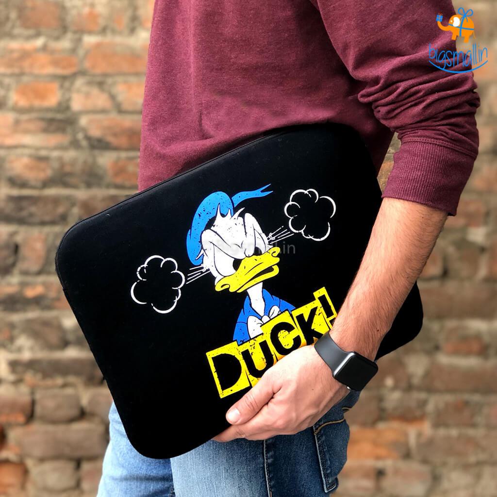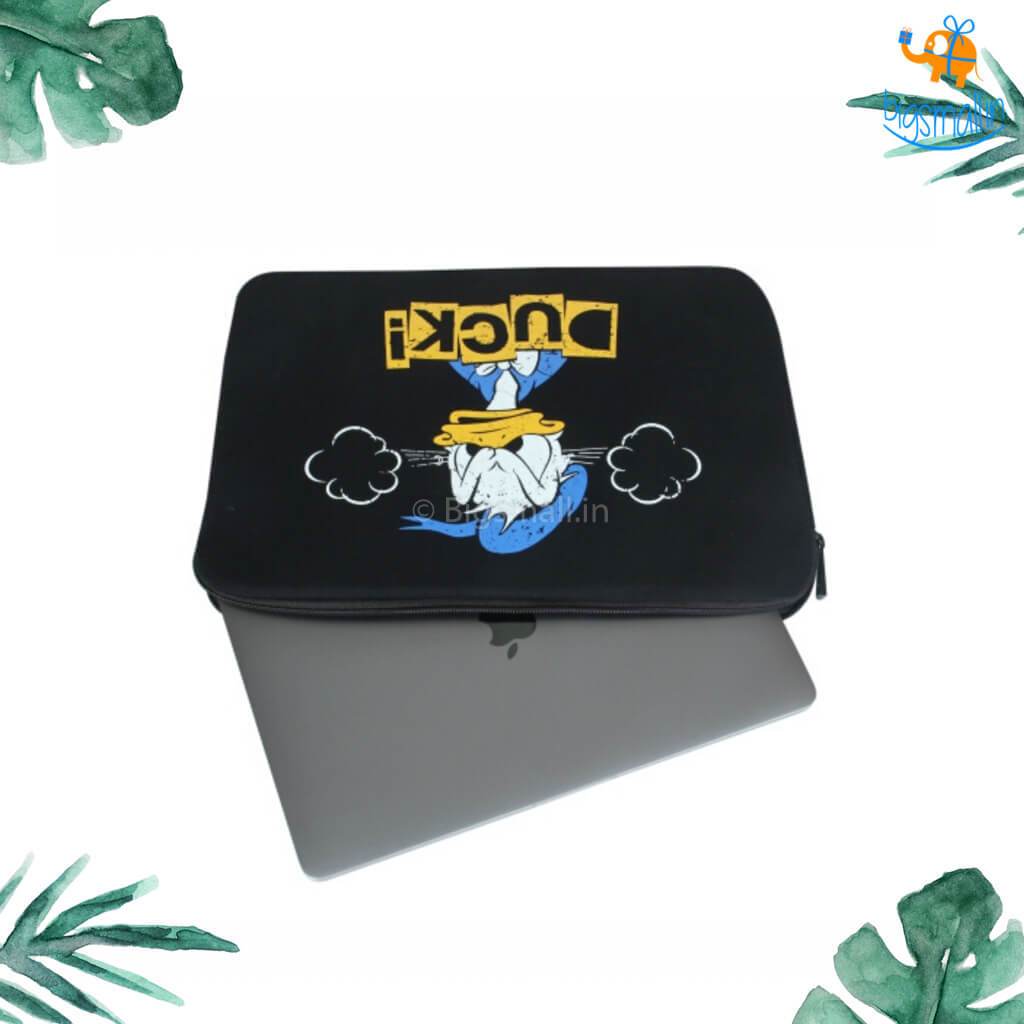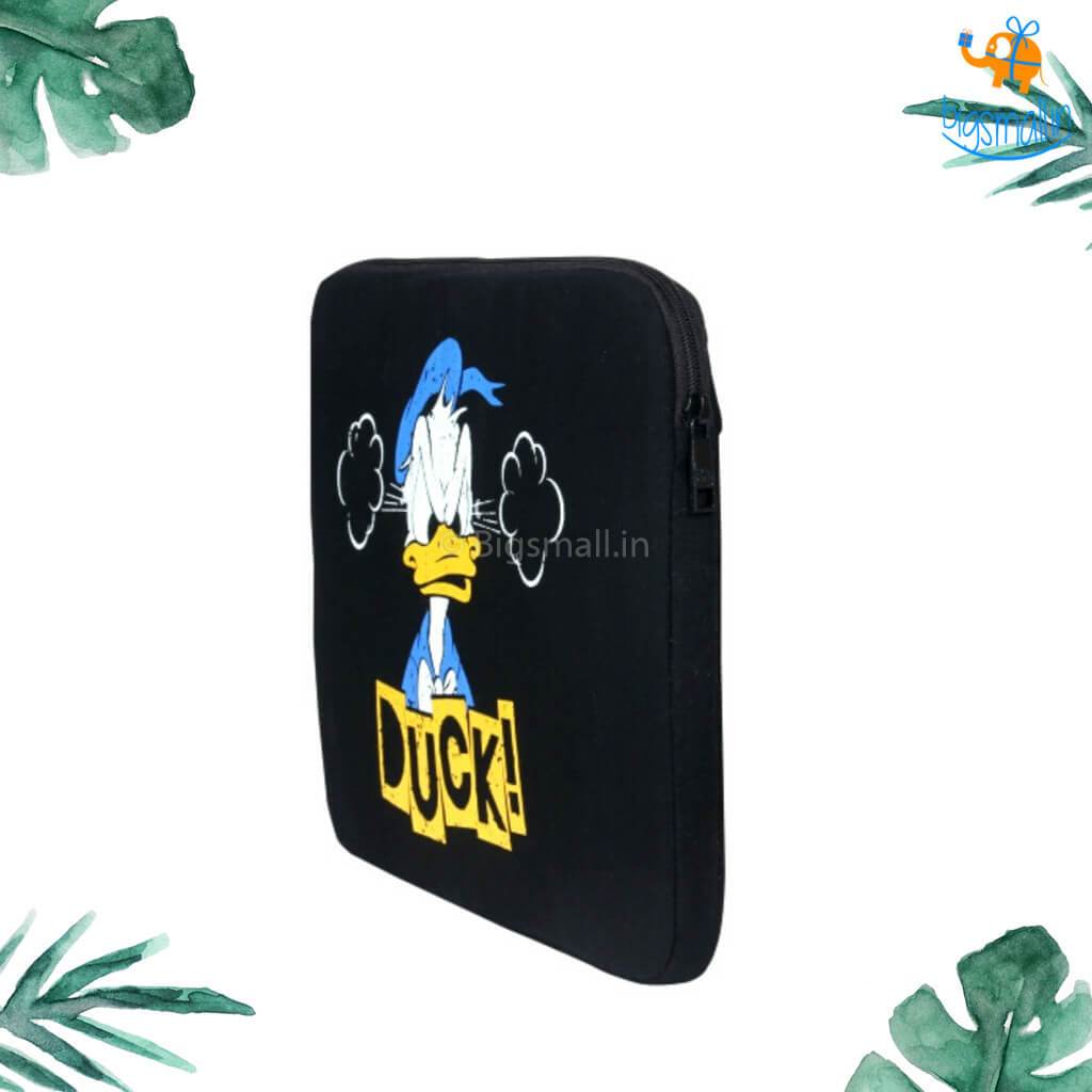 This cushioned laptop sleeve is the perfect partner for your laptop. The original Disney laptop sleeve will protect it from all the bumps and minor knocks. Designed for everyday use, the bag is made in ethical facilities. The bag has an additional zipper pocket in the back for some additional stuff.