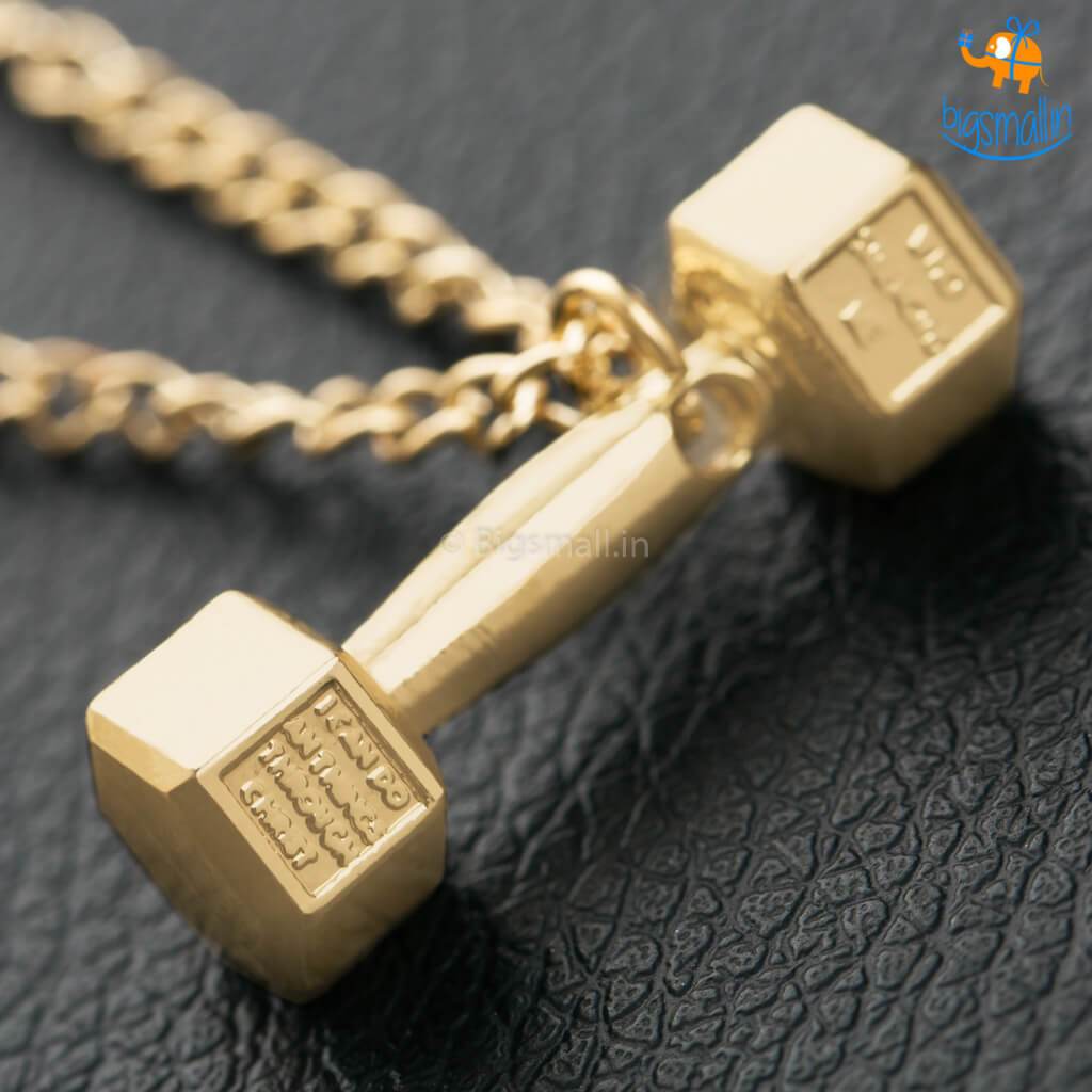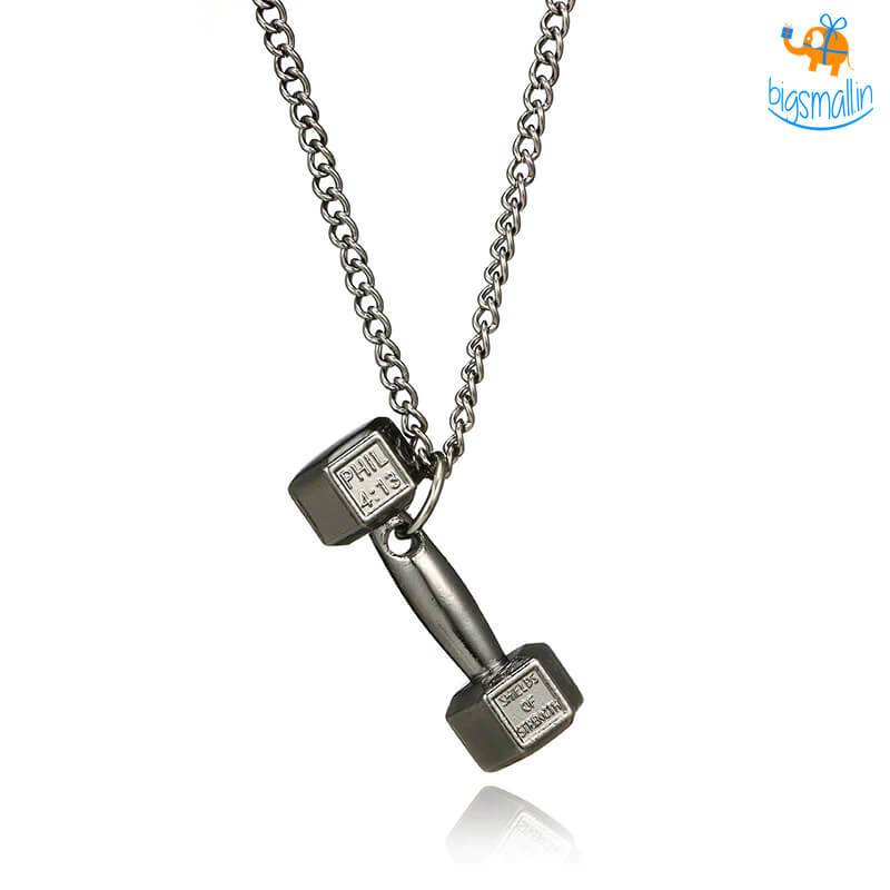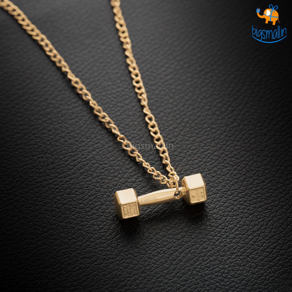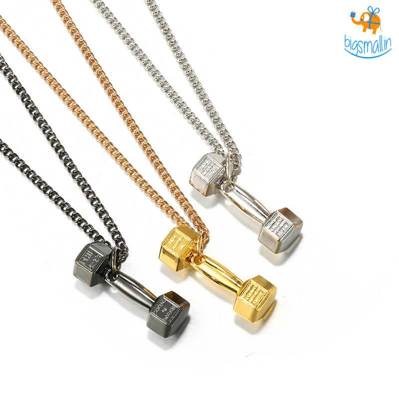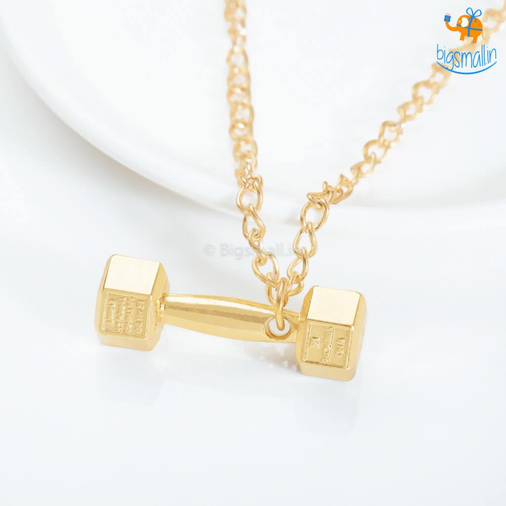 - Dumbbell themed metal necklace