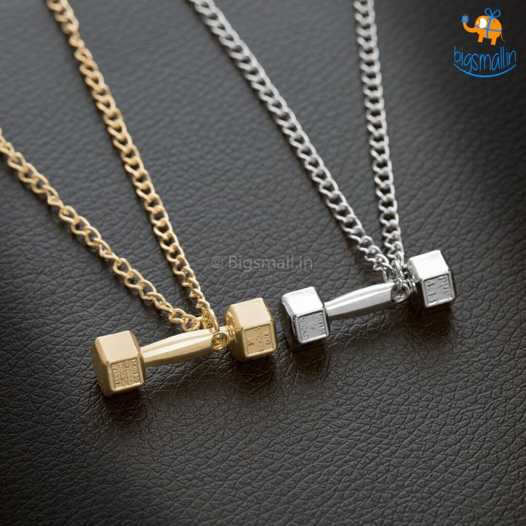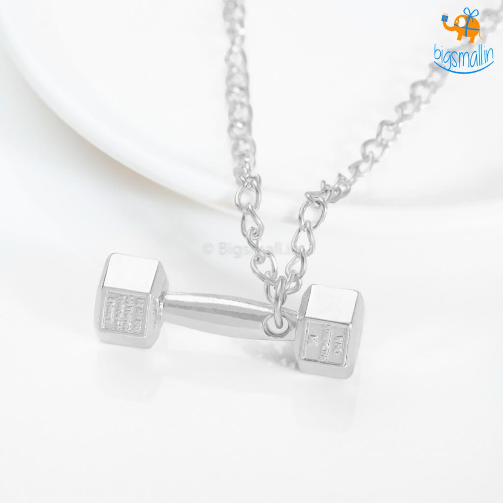 Presenting the Dumbbell Necklace, a cool piece of bling for someone who never misses gym sesh. The silver-colored metal chain paired with a dumbbell pendant is the perfect accessory for your gym gear. You can also wear it to work or play. Make a gift of it to the special ladies in your life and watch them glow in delight.