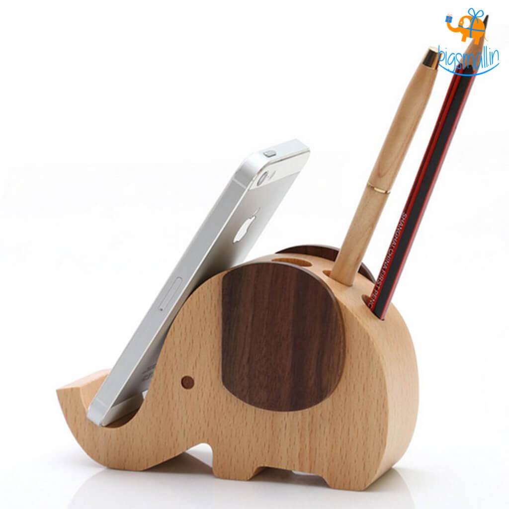 Remember the childlike euphoria as soon as you lay your hands on any novel piece of stationery. Amass the excitement of garnering new stationery with this endearing wooden Elephant pen-stand. A walk to the stationery supply from the store has always been a fun-filled rendezvous, to stack your little elephant pen-stand with your with favorite pens and pencils. So stock up supplies in style and hoist your stationery royally on this elephant’s back. Not just that add an ethnic yet trendy look to your workspace with this wooden finish elephant pen holder. The  trunk supports your phone as well in horizontal and vertical positions. With a premium quality wooden finish, you are bound to fall in love with this cute little elephant.