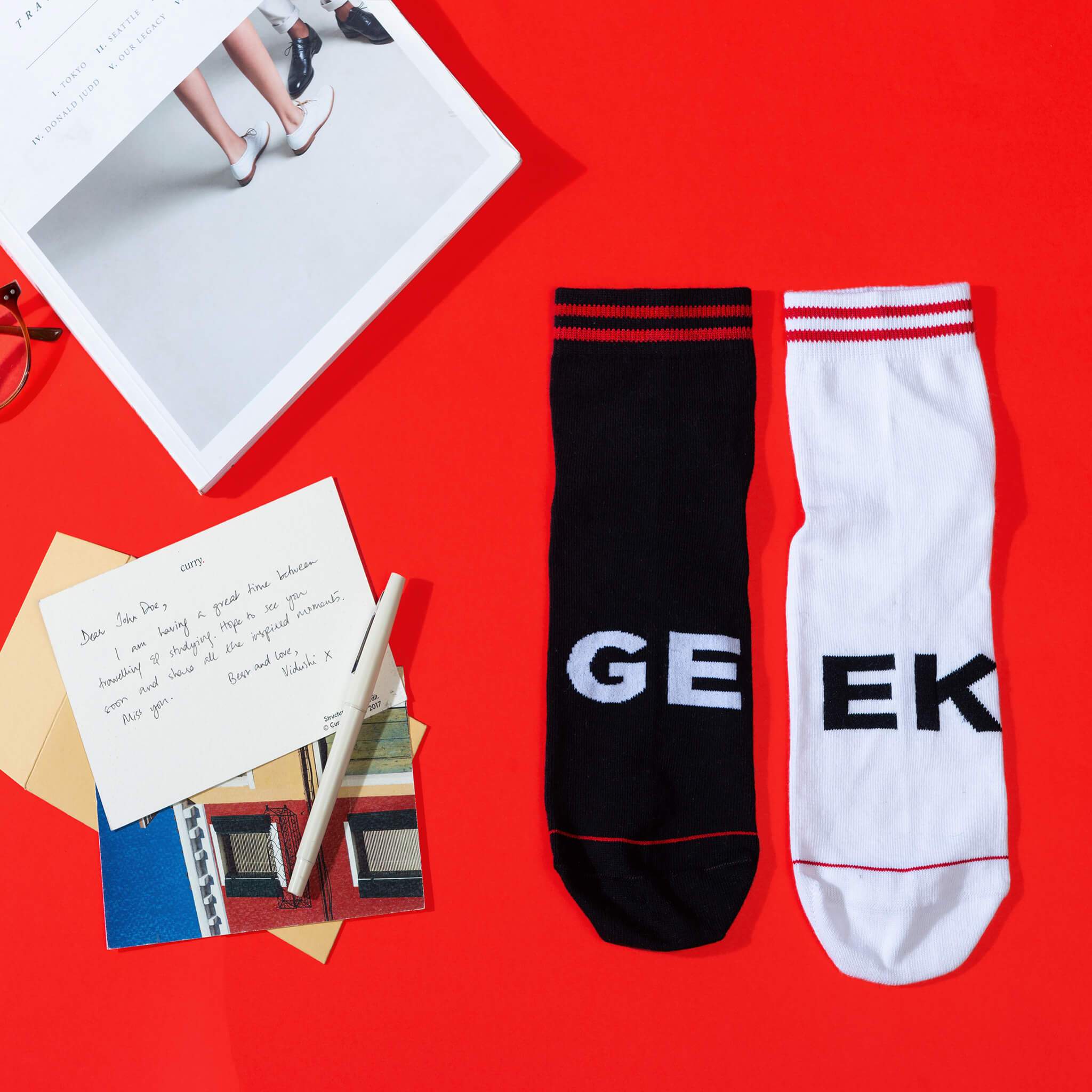 • Pair of socks - both of which together combined spell out "GEEK"