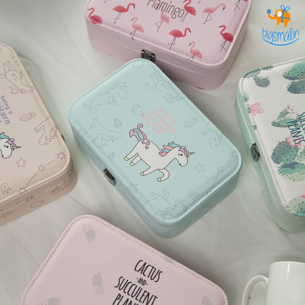 Give your wonderful jewellery the home it deserves with these sublime jewellery storage boxes! Available in 3 variants - cactus, unicorn, and flamingo, you can choose the variant tailored to your taste. Each box is extremely spacious - containing 8 compartments of various sizes, it is the all-in-one solution to all your jewellery storage needs. The box also includes a jewellery pillow - as well as an integrated mirror - you don't have to look for another one if you want to check out just how beautiful you look with your jewellery on. The provided silica gel also keeps the box moisture-proof, and it is airtight to keep foreign stresses from intruding. It is a gift that women in your life would simply love.