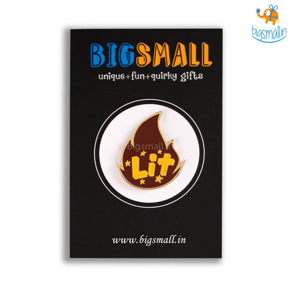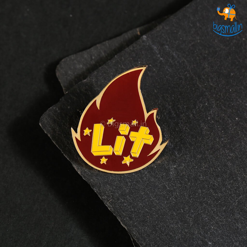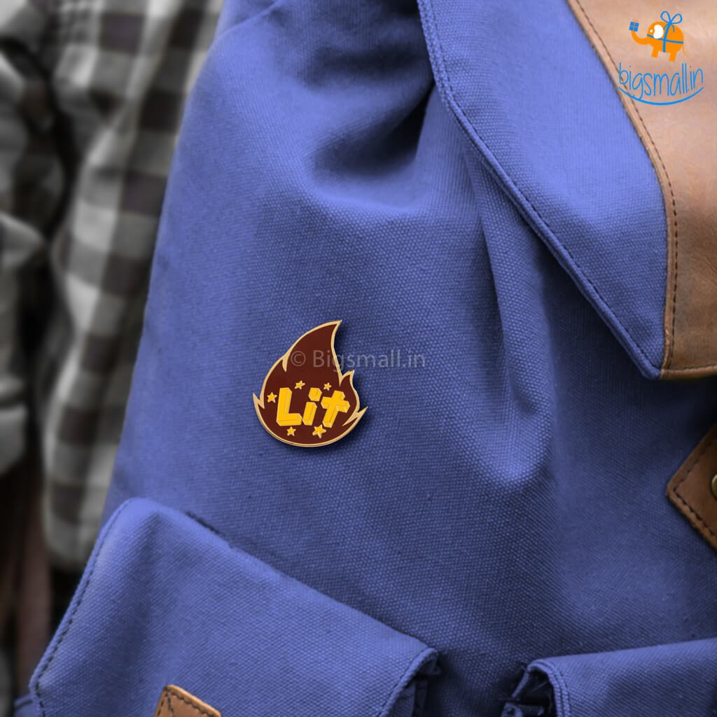 Presenting a lovely pin to show off how cool and on-trend you are. The Lit Lapel Pin features a metal sheet in the shape of fire with the words Lit on it. Pin it up on your backpack or your jacket to show the world your extensive knowledge of slang or gift it to a friend who you think is LIT.