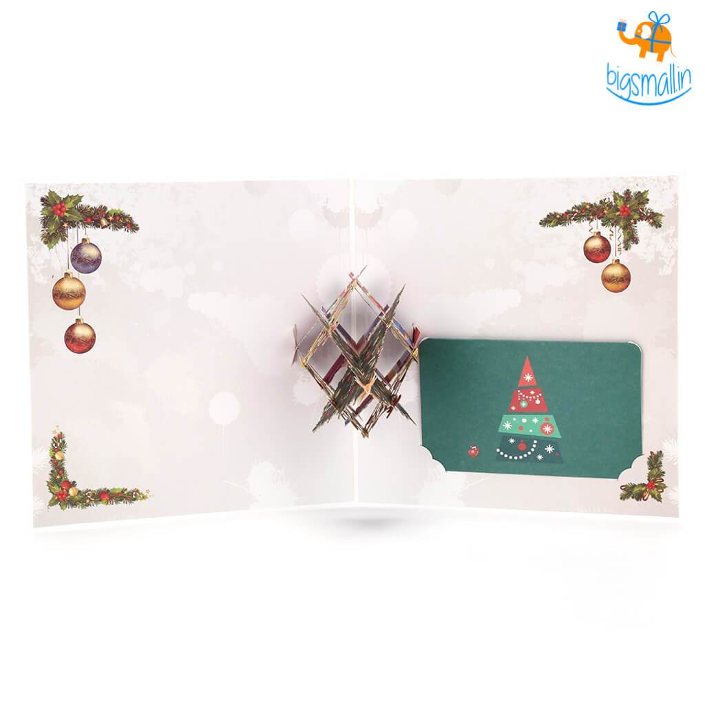 Christmas is always special and we always make it a point to make this day a little extra special. Celebrate Christmas with the Merry Christmas Pop Up Card. The beautiful green cover of the Merry Christmas pop up card is tranquil and hints at the scene inside. Once opened a Christmas tree emerges from the centre of the pop-up card. A beautifully decorated Christmas tree is at the centre and is surrounded by wrapped Christmas presents. Beautifully detailed and reminiscent of collectable Christmas tree, this pop-up card is breathtaking. If you feel pop up cards are too common then this card is just out of the league. The intricate laser cut pops up art is designed for perfection. The pop-up card incorporates a mini card within it to take a note of your messages for your loved ones. You are sure to fall in love with this masterpiece and just cannot get your hands off it. Make way for some style statement and be the person of the hour by leaving the crowd awestruck with this surreal card.