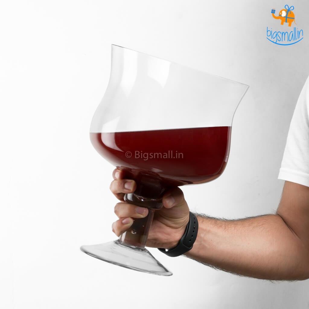 The jumbo wine glass is for those who love to live their life king size. A novel decoration, it can be used to hold flowers, wine bottles surrounded by ice, or simply ice for your party. A creative way to decorate your table or shelf, it is made of glass with approximate dimensions of 15 x 5 x 5 inches. A microfibre cloth is assisted with this glass, which helps to clean the glass to perfection. It is a perfect gift for a wine lover or a housewarming gift to a party maniac