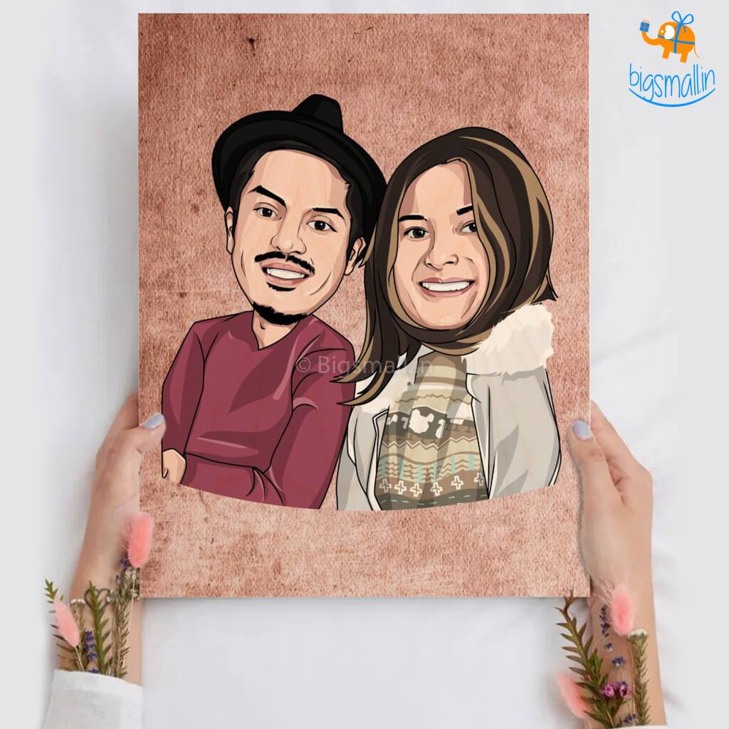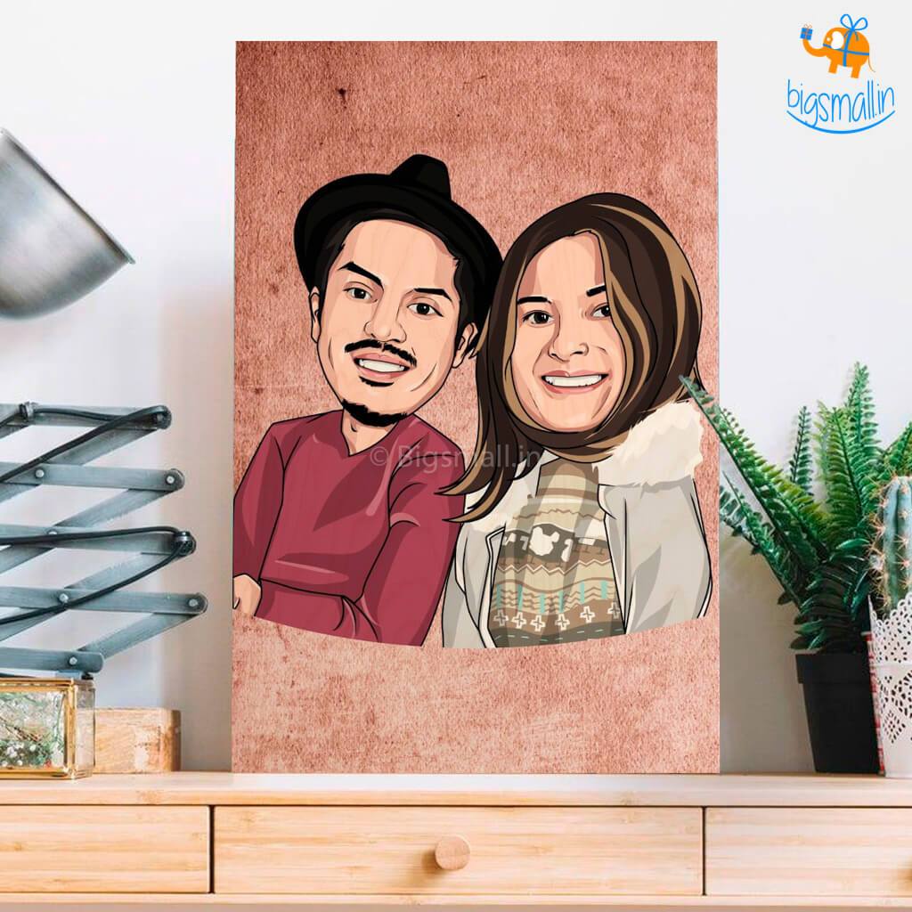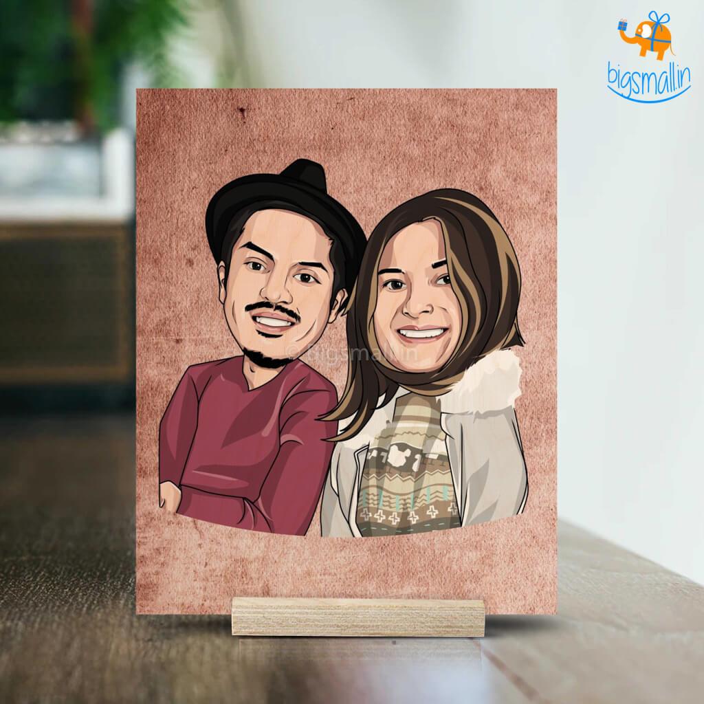 Personalized Caricature Wooden Portrait | COD Not Available