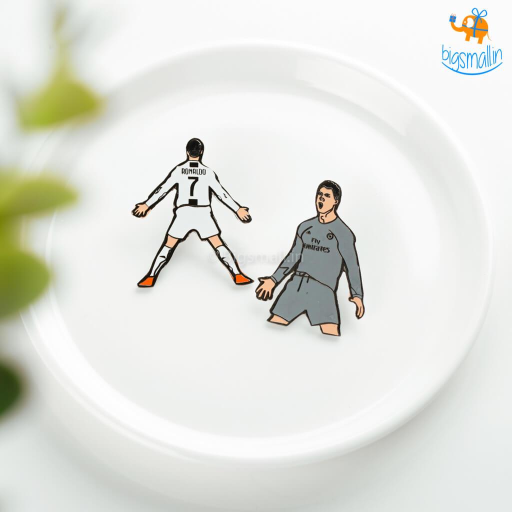 Whether you are team Messi or team Ronaldo, you just cannot ignore the passion, energy and the awesomeness of both these legends. Let your love for Cristiano Ronaldo be known far and wide every time you step out with the metallic Ronaldo Lapel Pin resting proudly on your tee. A set of 2 Ronaldo lapel pins will make a gift of pure awesomeness to your sports nut buddy or self. Either way, its game, set, and match!