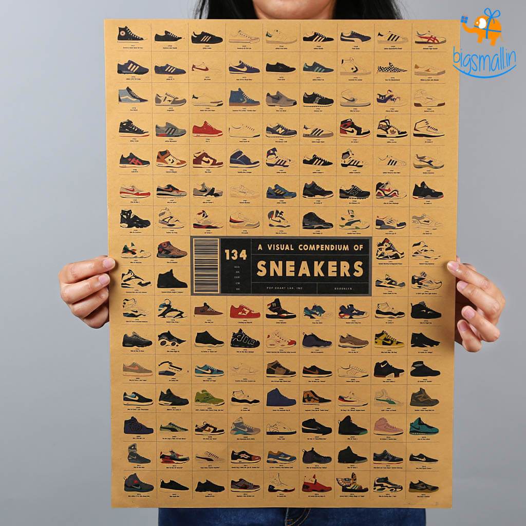 Sneaker fan, or a noob to the world of kicks? Ladies & gentlemen, tie up your kicks as we unravel A Visual Compendium of Sneakers Kraft Paper poster. Learning sneaker slang isn't enough to be welcomed into the world of sneaker lovers. Before you bet a fortune on Fight Club (the world’s biggest and generally priciest sneaker resale marketplace), brush up on sneaker models with this visual compendium poster showing an illustrated collection of 138 sneakers. This high-quality Kraft paper poster can be used as a fun quirky home decor item or as a viable gifting option for sneaker fans. Is your pair of kicks DS (DS= Dead Stock= New) or VNDS (Very Near Dead Stock) or PADS (Pass As Dead Stock)?!