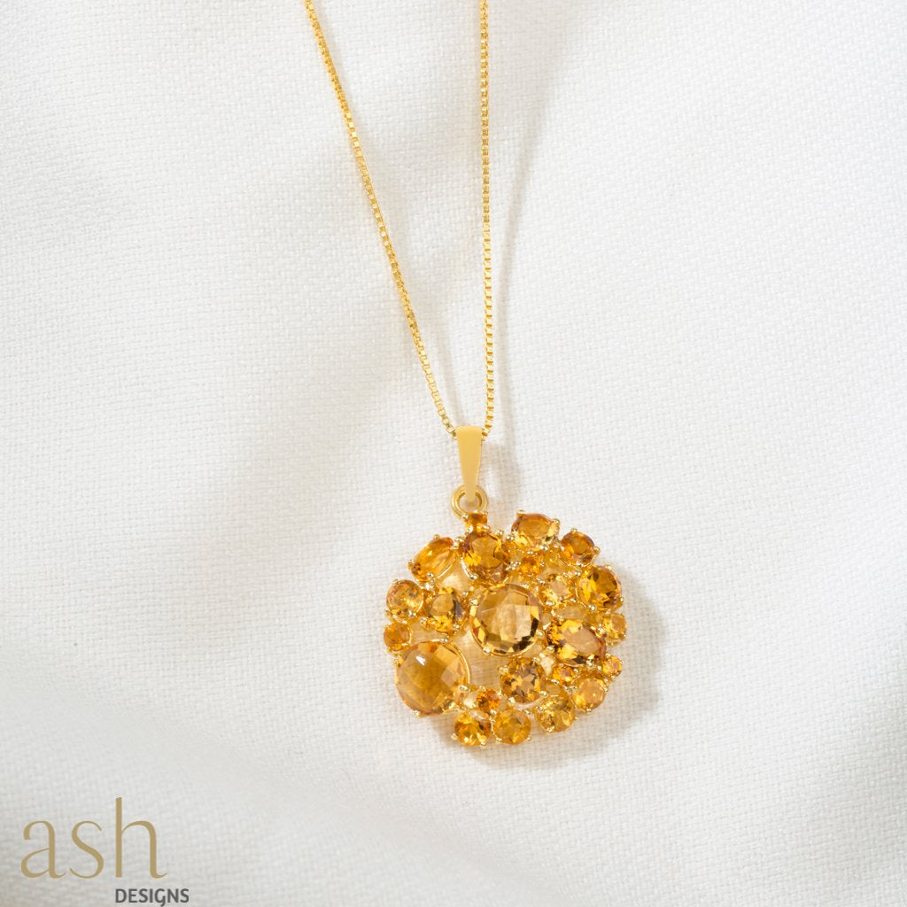 Starburst Halo Citrine Gemstone Pendant With Chain