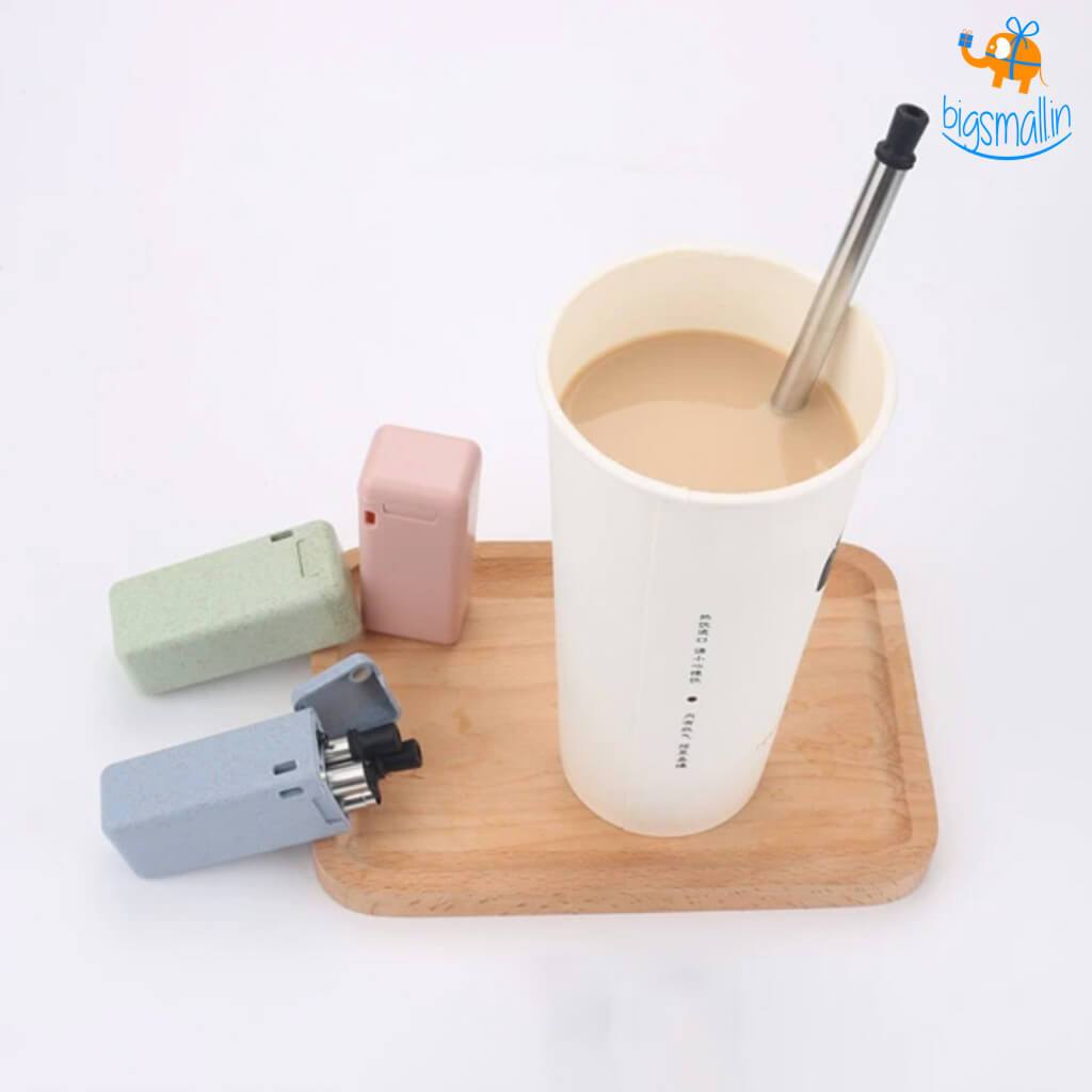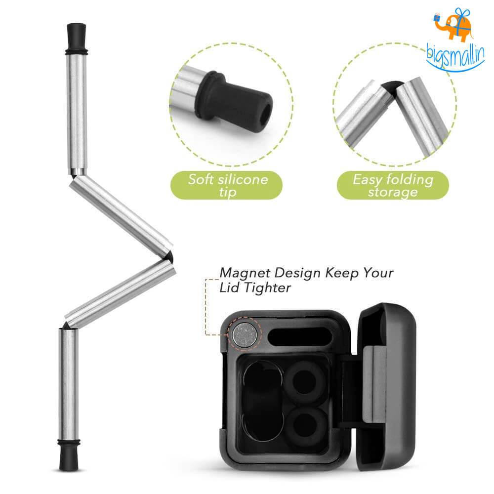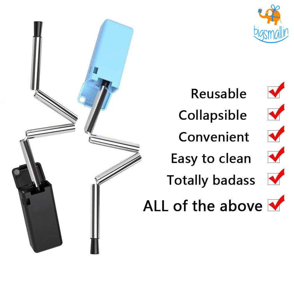- Package is inclusive of a collapsible straw and a stainless steel cleaning brush
