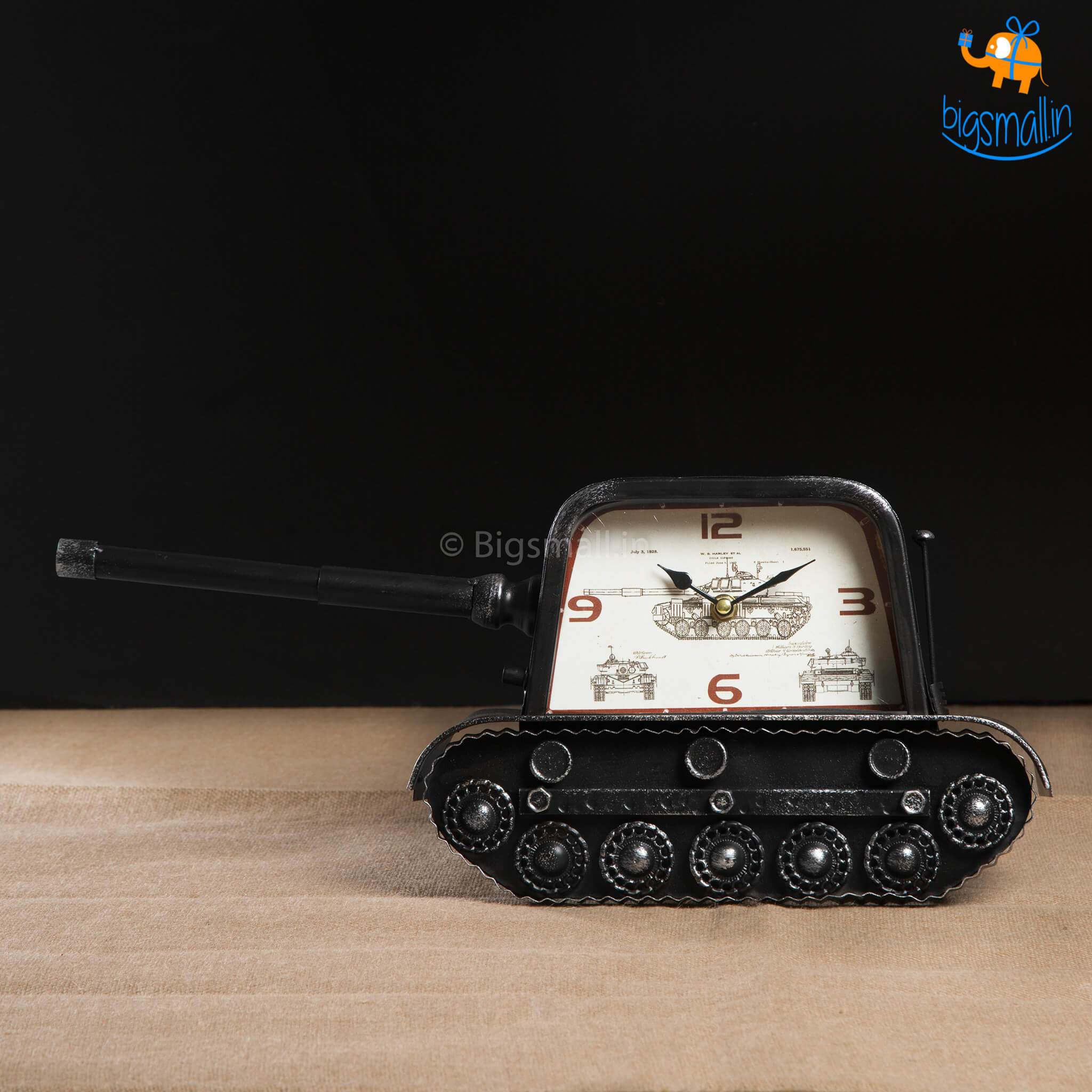 Artillery and heavy machinery freaks are so gonna love the Vintage Tanker Desk Clock! Solid and rustic to the tee, this uber-chic desk clock will look great on a war veteran's, or an army man's mantelpiece. Assemble the gun on the screw provided on the timepiece. The perfect housewarming gift for someone who is fascinated by tanks, it is undoubtedly quite the conversation starter.