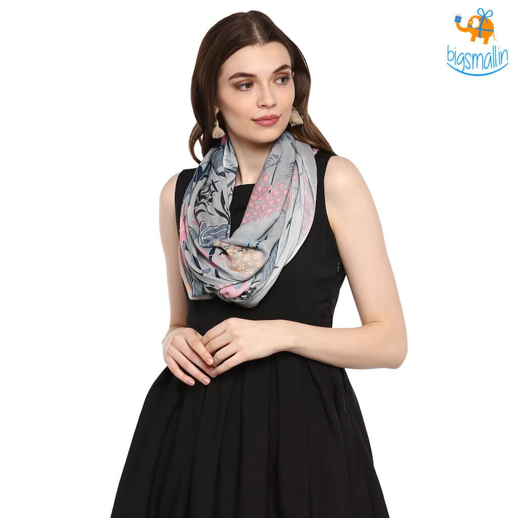 Ladies gear up for some good stuff coming your way with a range of modern and beautiful handcrafted scarves. This scarf has an all-over print of flowers for an uninhibited feminine fun and quirky look. It can be paired with a pair of shorts or a dress. Wrap around twice to give a perfect layered look. Perfect gift for the lady who likes to have some fun dressing up and isn’t afraid of experimenting with new styles.