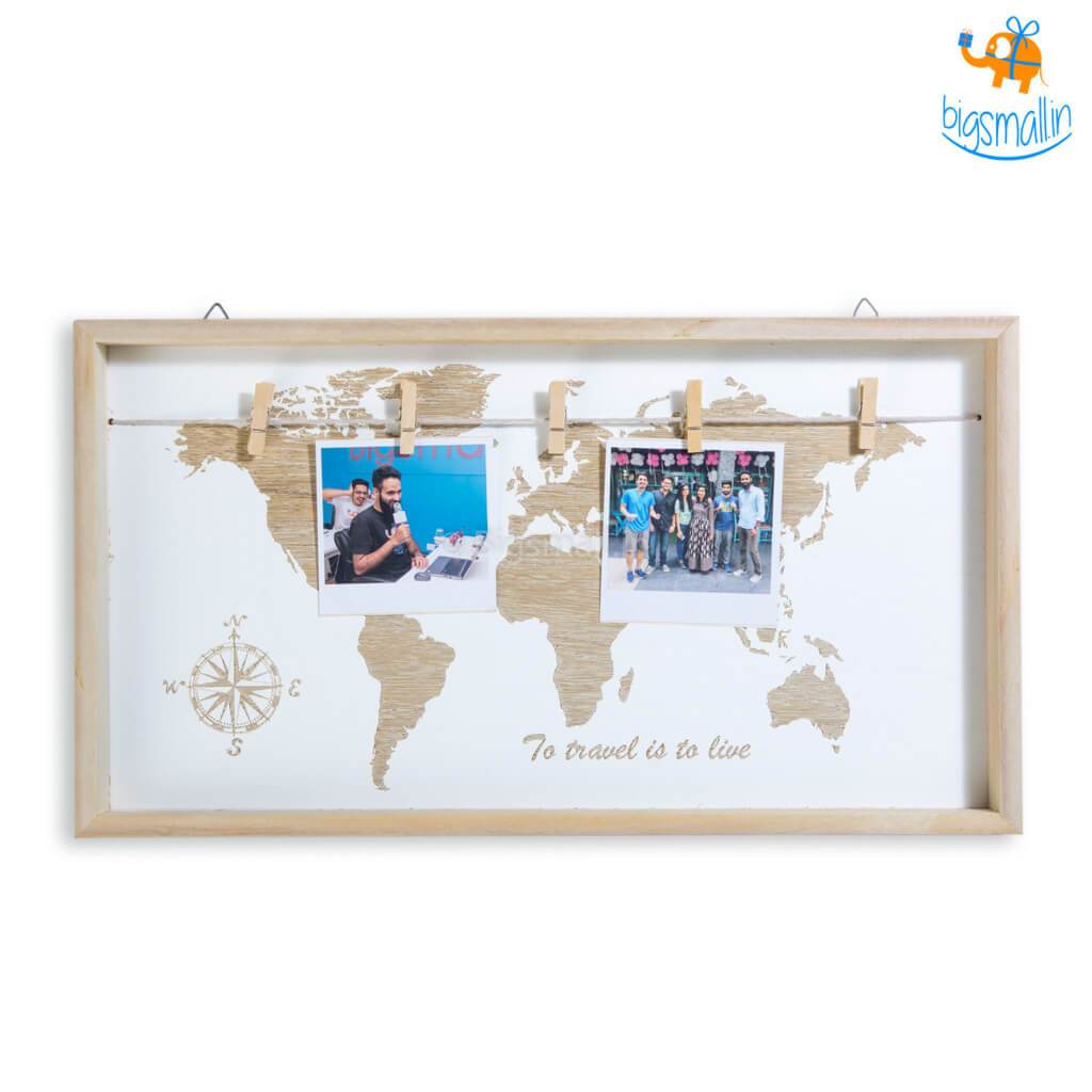 To travel is to live, said a wise man once...A snapshot is nothing but a memory frozen in time and captured on photo paper. Such special memories need to be preserved in a unique photo frame. Presenting the Wanderlust Photo Hanging Board, this creative frame ensures that your favorite snapshots hang in there! With an elegant world map background and a jute rope with cute wooden clips to hang your Polaroids or other snaps, this definitely has a premium & quirky feel to it. A great home decor item or house warming gift set the bar higher with this cool product.